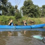 I nie zawiedliśmy się. Na luzie, bez pośpiechu w letnim słońcu daliśmy się ponieść nurtowi Nysy Łużyckiej. Z Parku Mużakowskiego do Żarek Wielkich. Tylko my, kajaki, rzeka i wszechobecna cisza z naturą w tle, czasem tylko lekko zmącona naszymi głosami.
