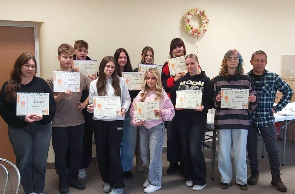 W dniach 21–28 listopada 2025 r. dziesięciu naszych uczniów wzięło udział w intensywnym kursie kelnerskim, realizowanym w ramach projektu Lubuskie Szkolnictwo Zawodowe dla Nowoczesnego Rynku Pracy.
