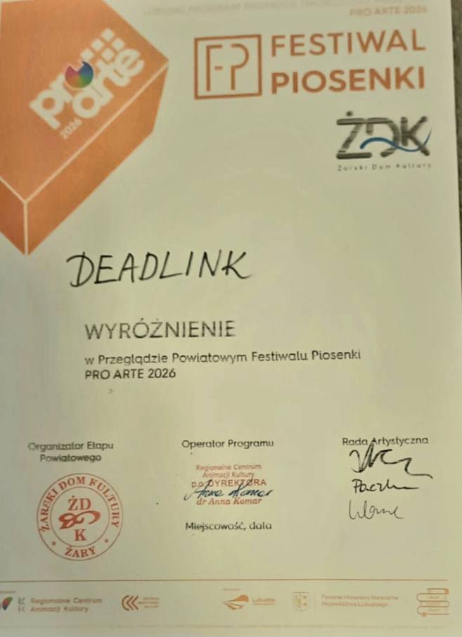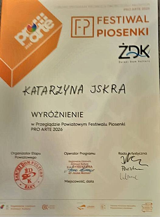 Naszą placówkę reprezentowała Katarzyna Iskra z klasy 4 TŻF oraz zespół wokalny Deadline. W przeglądzie wzięła udział także nasza Joanna Bronowicka z klasy 5 TH, która reprezentowała ŻDK.