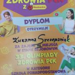 Z ogromną radością i dumą gratulujemy naszej uczennicy Zuzannie Szczepaniak z klasy 5 TŻ, która zajęła III miejsce w wymagającym konkursie wiedzy z zakresu zdrowia, stylu życia oraz higieny.