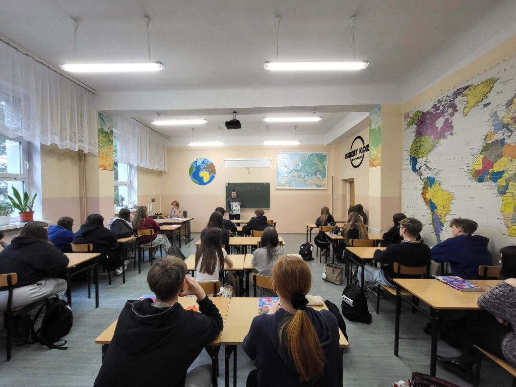 W Zespole Szkół Ogólnokształcących i Technicznych w Żarach dnia 23.03.2026 r. odbyły się spotkania z zespołem EcoFlex, który realizuje swój projekt w ramach Olimpiady Zwolnieni z Teorii. W ich trakcie przedstawiono uczniom 11 klas, jaki problem społeczny projekt stara się rozwiązać oraz w jaki sposób to robi.