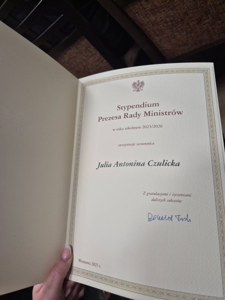 Miło nam poinformować, że nasza uczennica Julia Czulicka z klasy III TH ZSOiT w Żarach, znalazła się w gronie stypendystów Prezesa Rady Ministrów.