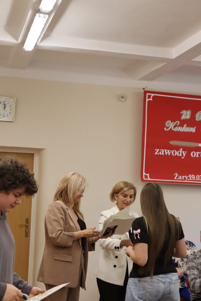 3 miejsce – Marta Zychla – uczennica z Centrum Kształcenia Zawodowego i Ustawicznego w Żarach. W czasie oczekiwania na wyniki uczestnicy wraz z opiekunami i zaproszonymi gośćmi skorzystali ze skromnego poczęstunku przygotowanego przez uczniów naszej szkoły.