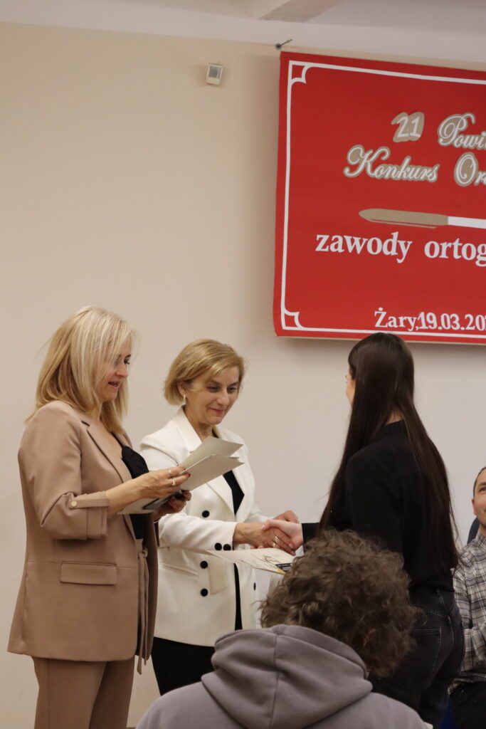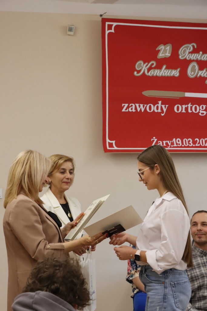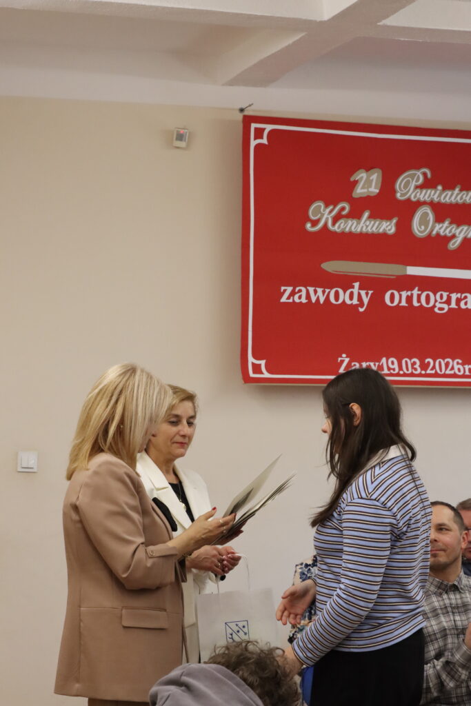 Dnia 19 marca br. mistrzowie ortografii ze szkół powiatu żarskiego spotkali się w naszej szkole na 21. Powiatowym Dyktandzie. W meczu ortograficznym wzięło udział osiem szkół – jedna z Lubska i siedem z Żar. Konkurs poprzedził występ artystyczny. Dyktando jak zwykle nie było łatwe, ale po sprawdzeniu prac udało wyłonić się najlepszych. Wyniki przedstawiają się następująco: