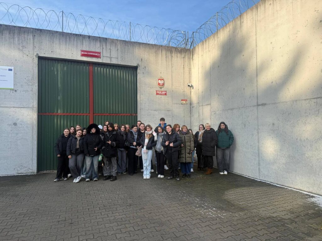 25.11.2025 r. uczniowie kl. 4 TŻ i 4 TAK brali udział w zajęciach profilaktycznych w Zakładzie Karnym w Krzywańcu. Młodzież spotkała się z grupą osadzonych, poznała ich historie, wyroki, życie więzienne. Skazani nie tylko przestrzegali młodych ludzi przed alkoholem czy narkotykami, ale również uświadamiali, że pod wpływem używek bardzo łatwo popełnić przestępstwo.